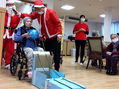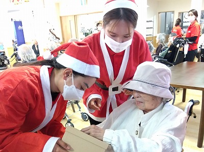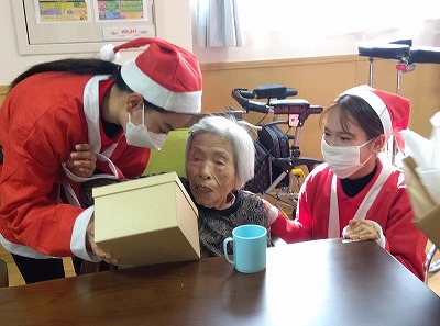 かわいいしらさぎサンタさんが各入居者様のもとへ