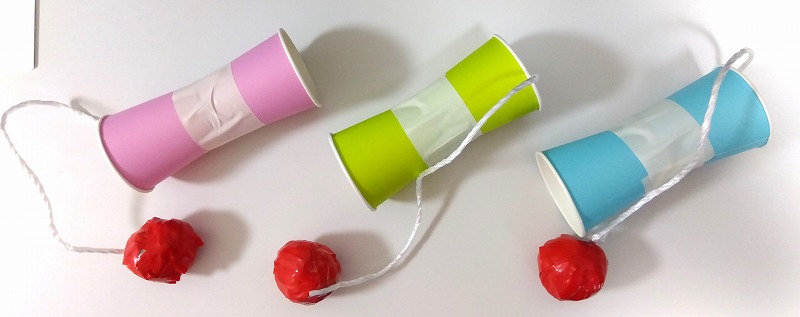 紙コップにくっつければお手製けん玉の出来上がりです♪