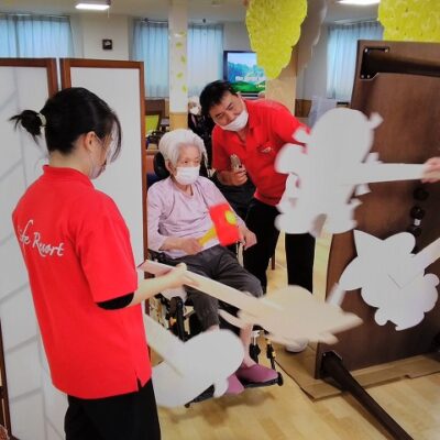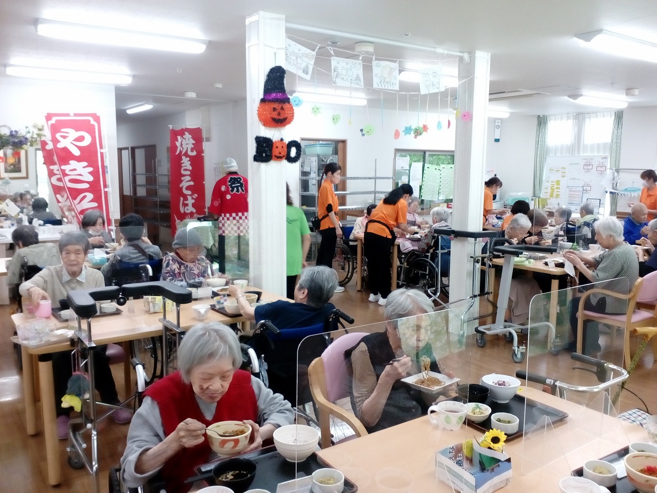 「今日は焼きそばですよ」の職員の