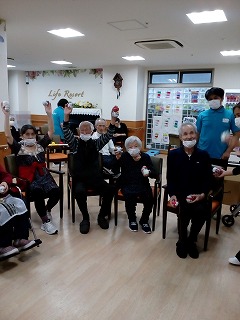 先週のレクレーションで色塗りしましたお魚たち