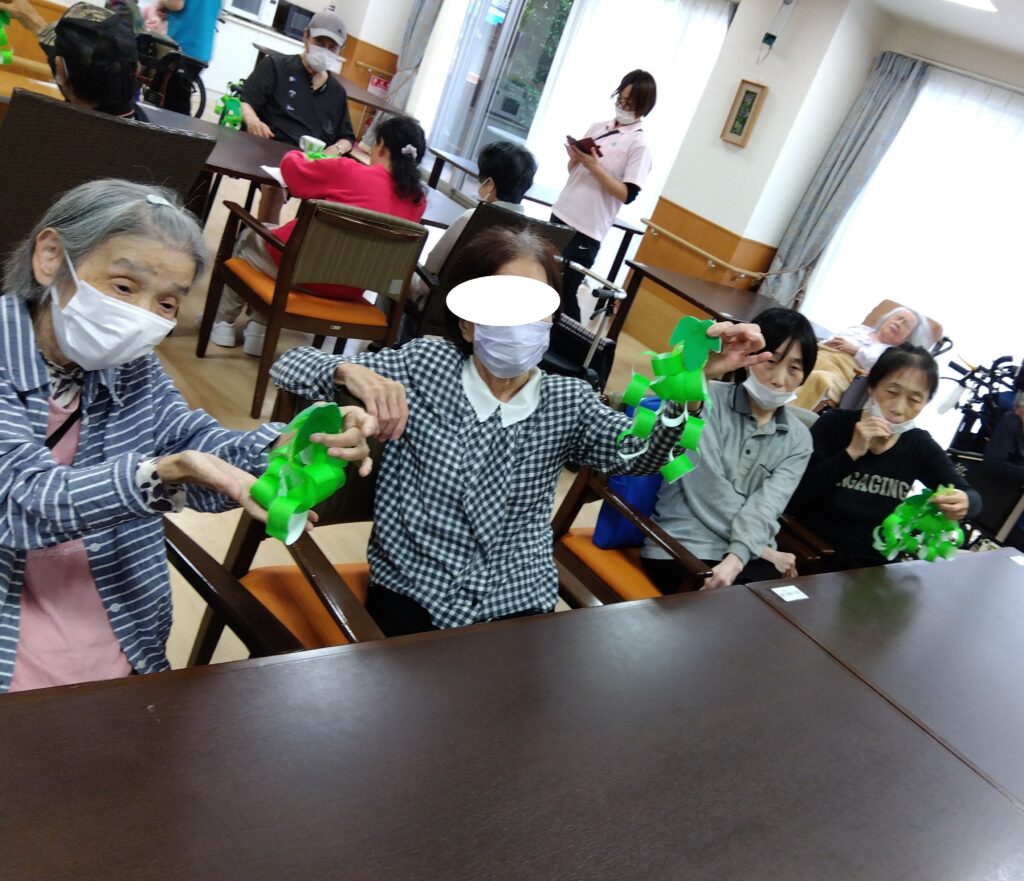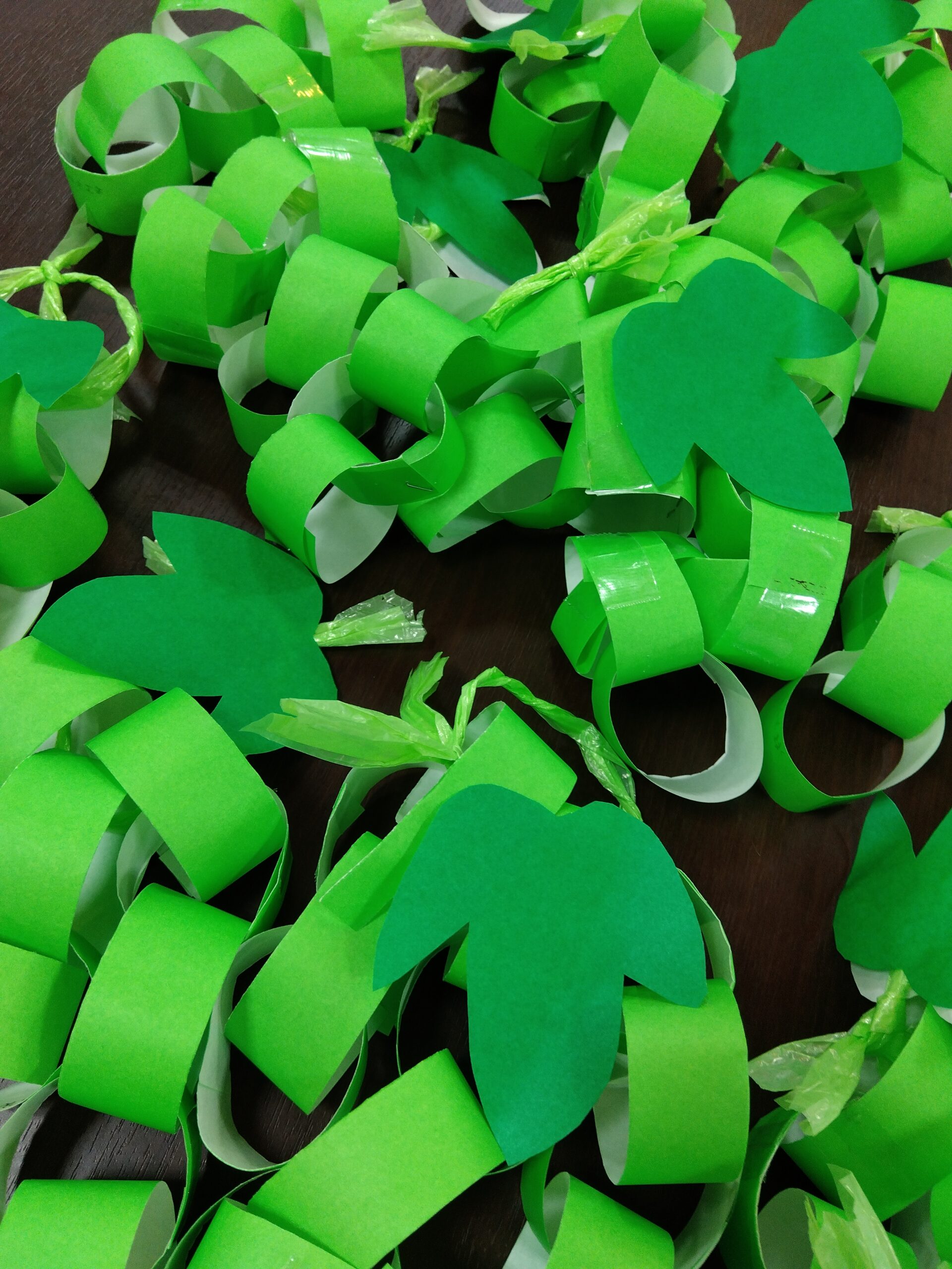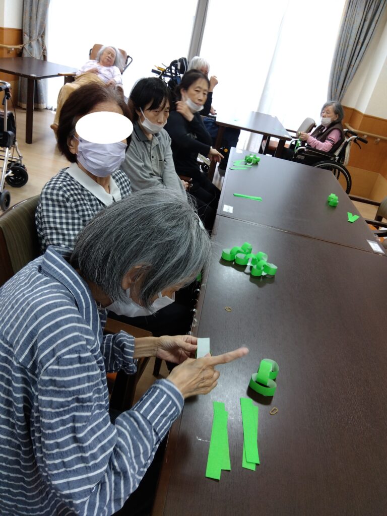 みなさま折り紙で輪っかをたくさんつなげてぶどうの実を作っていきます(/・ω・)/