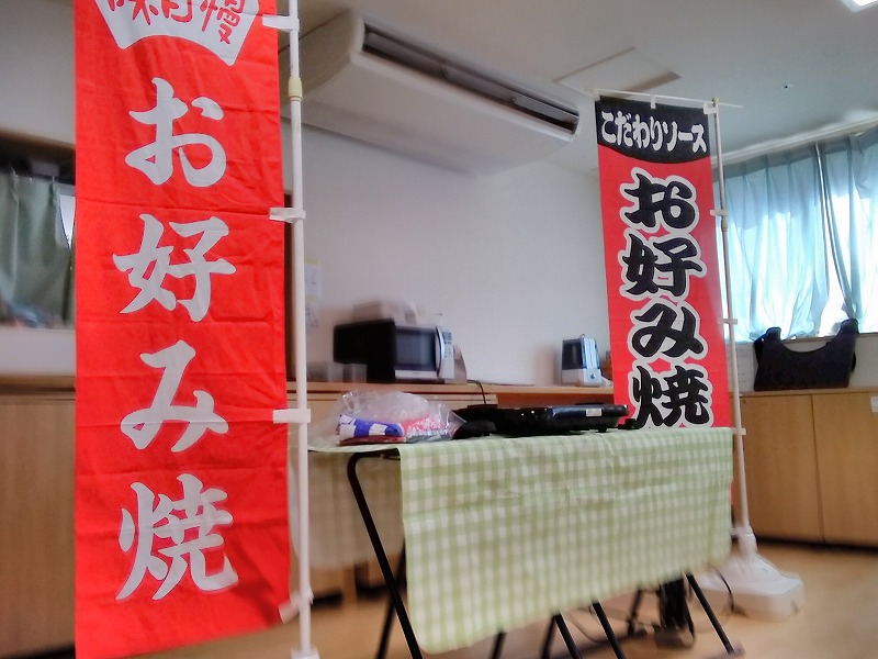 今月のイベント食は焼きたてアツアツのお好み焼きです!