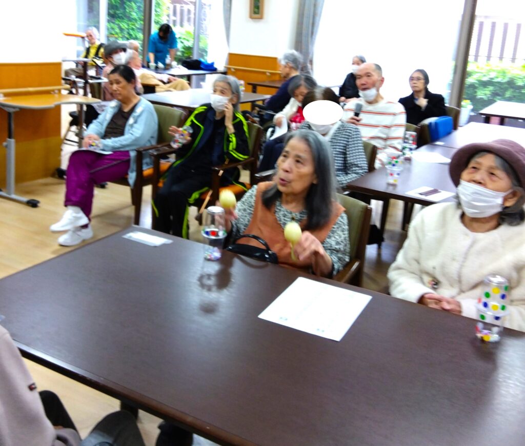 東住吉 カラオケレクレーション🎵 2025.11.28 前回のレクレーション作りました 👆このマラカスを使って ノリノリでカラオケスタートです(*^-^*) とても賑やかで楽しいカラオケタイム となりましたヽ(^。^)ノ