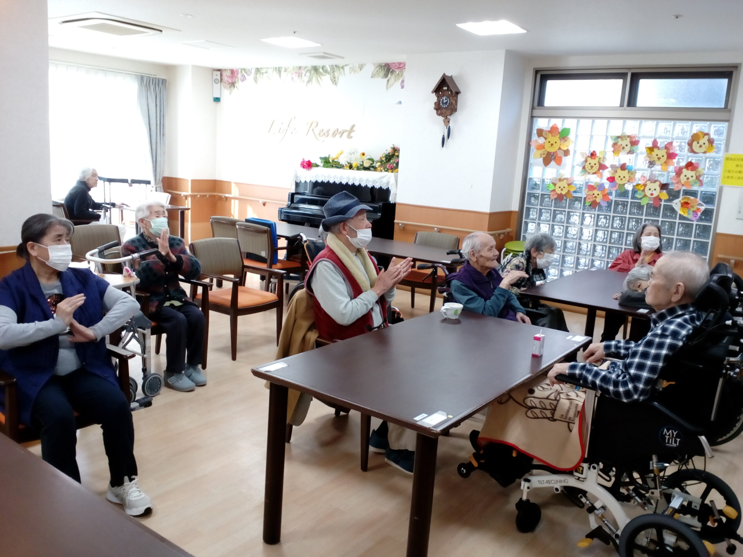 東住吉 カラオケレクレーション🎤 2025.11.28 カラオケの前に皆様で音楽に合わせながら 手指体操をしていただきました。 はじめに皆様の知っている曲を一緒に歌い、 その後リクエスト曲を歌っていただきました。 皆様楽しそうに手拍子で盛り上がっておられました👏