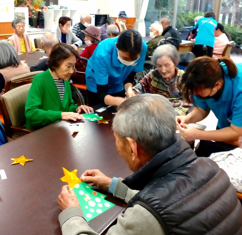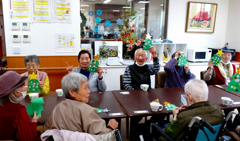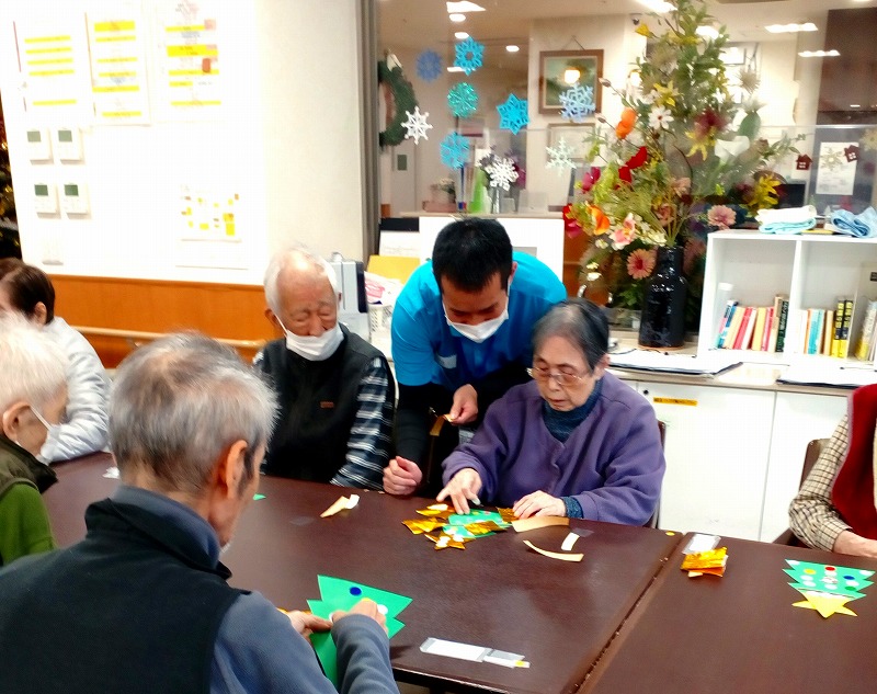 東住吉 クリスマスの工作 2025.11.28 今週のレクはクリスマスツリーの飾りを 制作🎄みなさま個性豊かですね♪ もうすぐクリスマス会を迎えます🥳 工作の前に予行練習♪ 振付けをしながらクリスマスソングを 歌います🎵