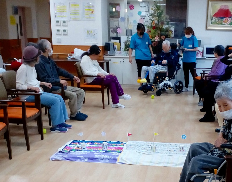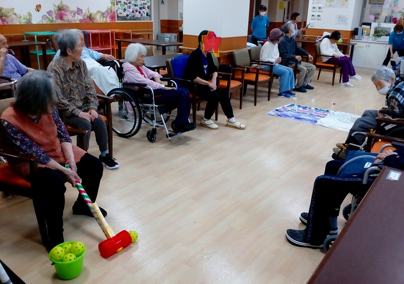 東住吉 ゲートボール 2025.11.28 今週のレクは簡単なゲートボールにチャレンジして頂きました。みなさま器用に打たれ、ボールをフラッグのそばにのせることに成功されてました👏 ゲーム後は、クッキーとお茶でリラックスタイムを過ごしました。来週は、ハロウィンの工作します🎃