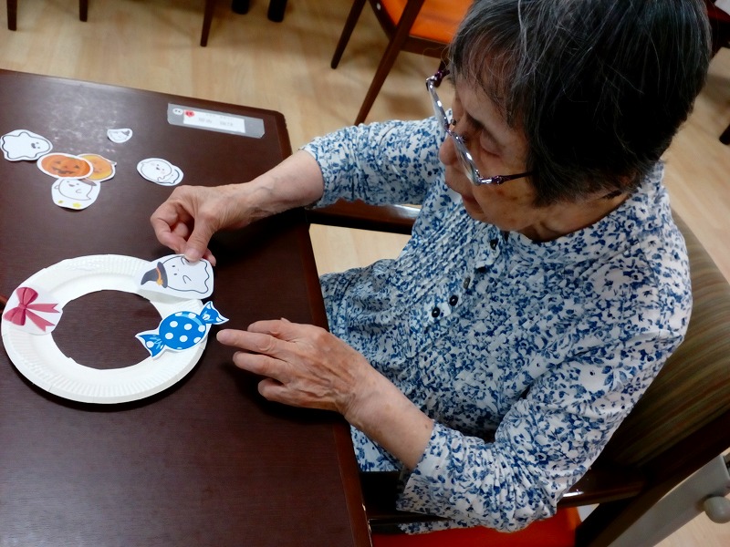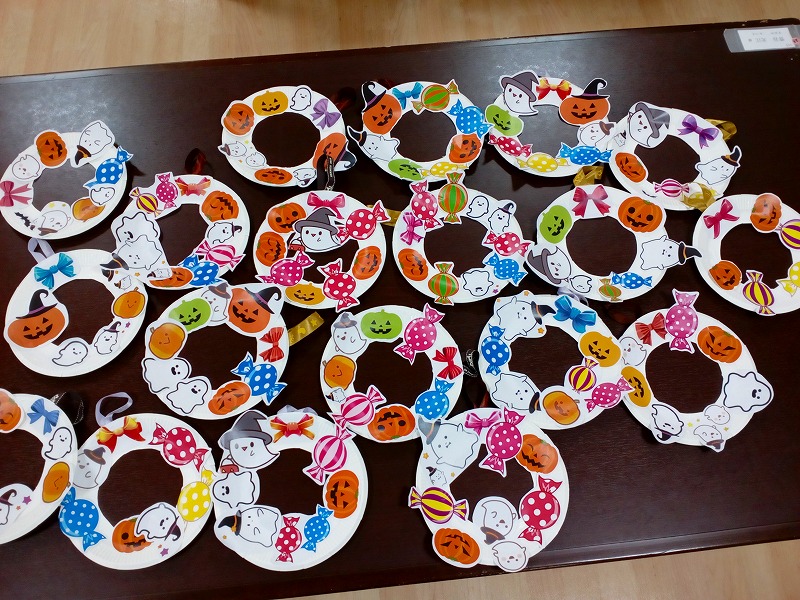今回の工作レクは、ハロウィンのリースを作りました🎃