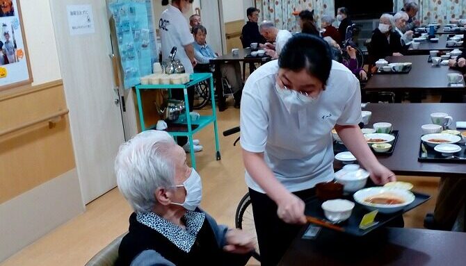 10月28日(月)から11月8日(木)までの10日間、大阪キリスト教短期大学1年生の学生5名が、介護福祉を目指して当施設にて実習を行っています。実習担当者の指導のもと、身体介護や生活援助について学び、利用者様に寄り添いながら、熱心に取り組んでいます。