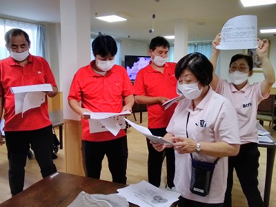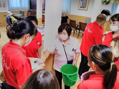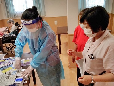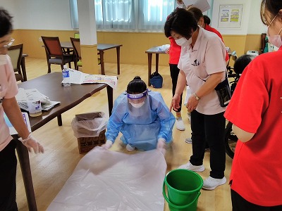 嘔吐物の適切な処理方法を実際に実践致しました。