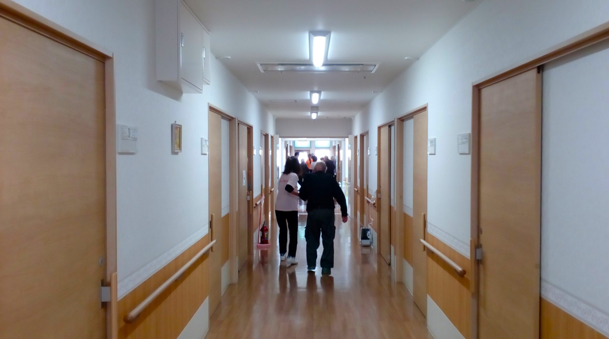 入居者様に参加いただき、歩ける方は屋外の避難場所まで誘導しました。