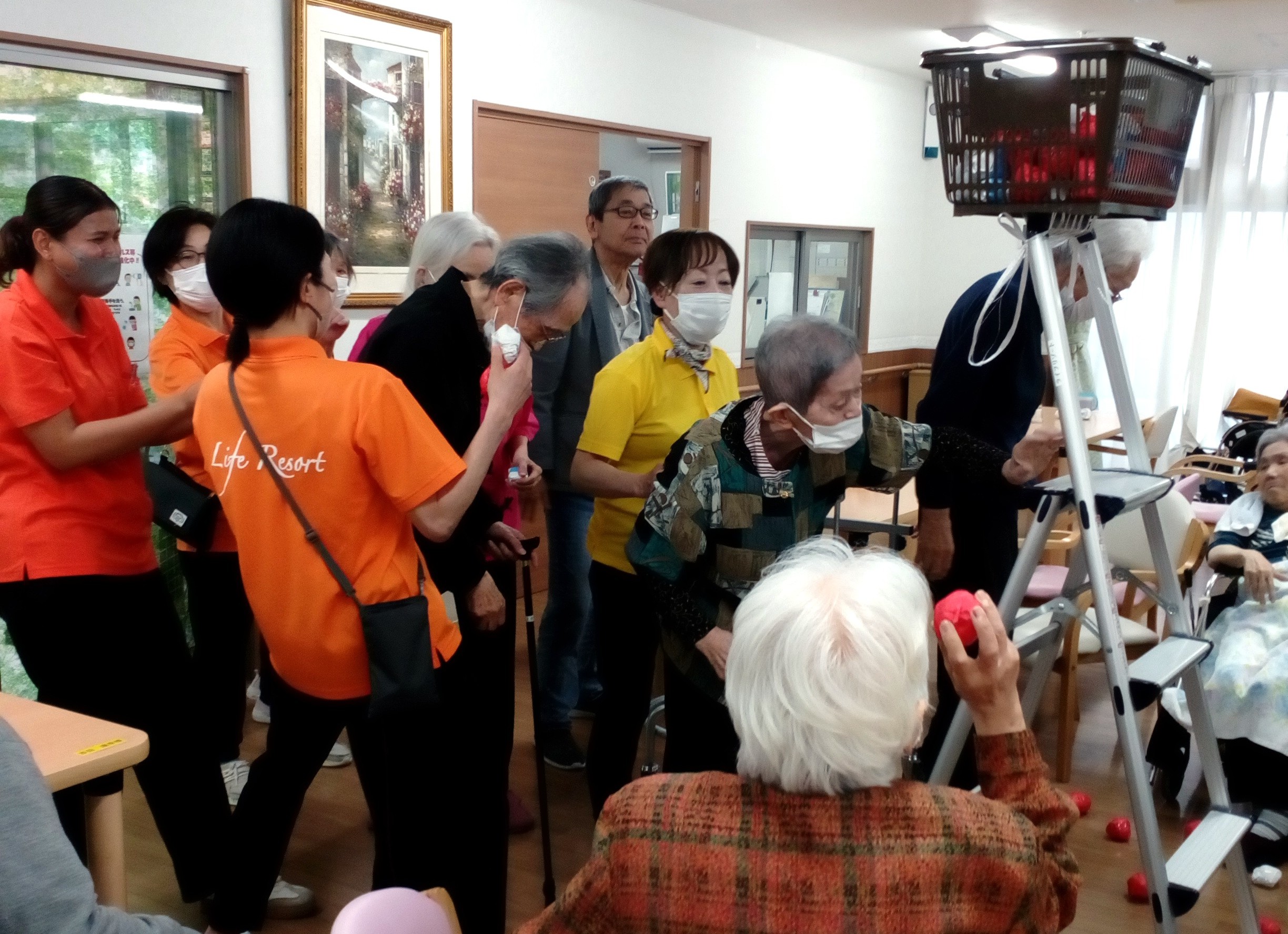 枚方 🔴⚪玉入れ🔴⚪ 2025.11.28 今週のレクは玉入れをしました✨赤組と白組に分かれて、脚立にくっつけたカゴに紙ボールをたくさん入れる競争です 夢中になりすぎて、かごに入れにいくゲームとなり、みなさまの負けず嫌いぶりで大笑いしてしまいました😂 🔴赤34個 ⚪白30個で赤組の勝利です🎊