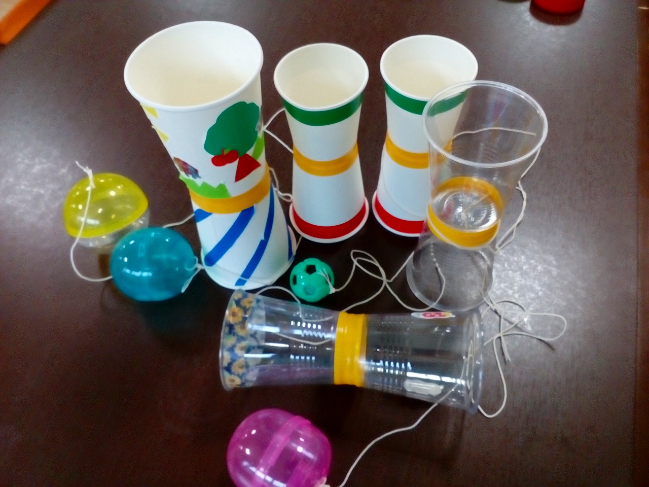 東住吉 紙コップけん玉でチャレンジ 2025.11.28 今週のレクは、けん玉チャレンジを楽しみました♪けん玉は紙コップ製の手作りです。ユニークで安全で、糸の長さで難易度も選べて楽しんで頂けます👍 まずは、手指体操の動画を観ながら準備体操から・・・ けん玉の準備に入ります・・・ 大成功!!👏