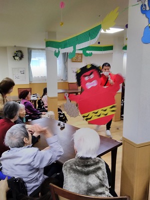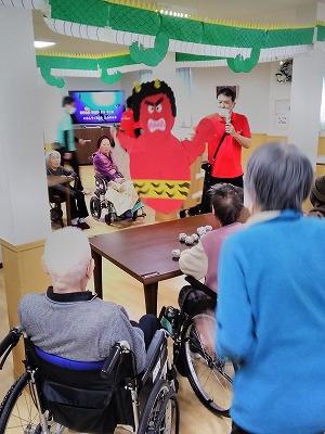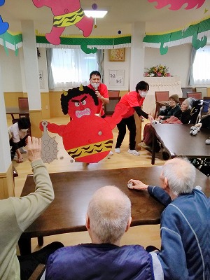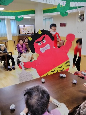 「鬼は~外!福は~内!」 本日のレクリエーションは鬼退治ゲームを行いました♪