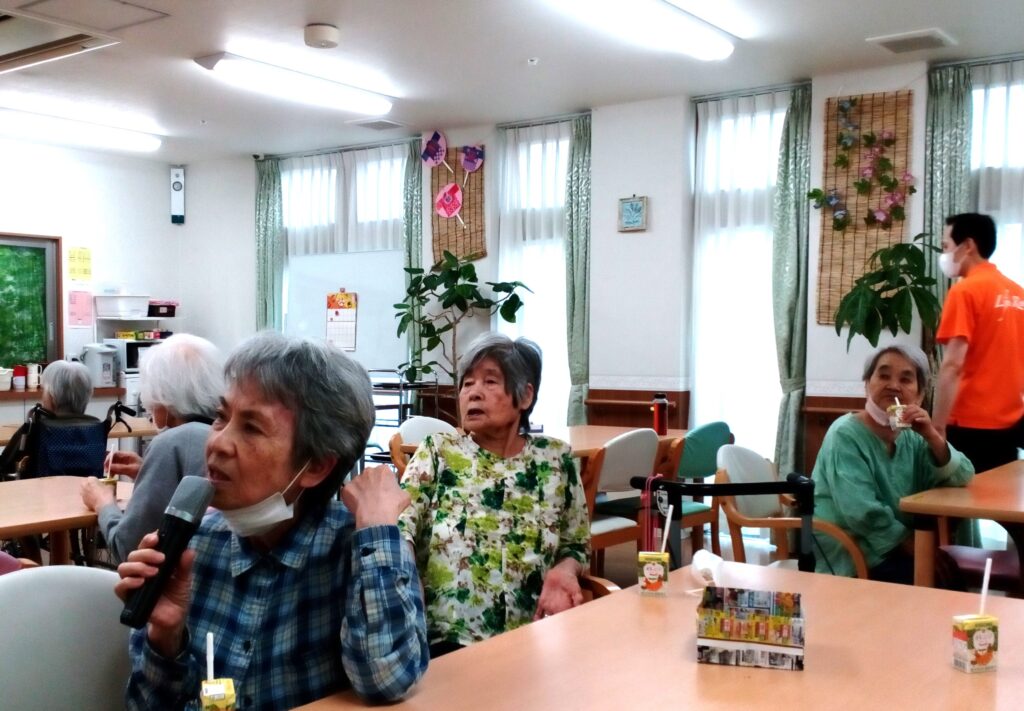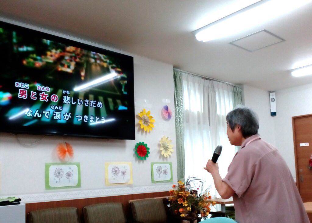 マイクを持って集中して歌う人、マイクは持たずみんなと一緒に歌う人、それぞれに楽しんでおられました。