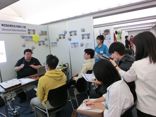 見本と手順の写真をみながら、職員の説明を聞きながら、皆さん丁寧に作ってくださっています。