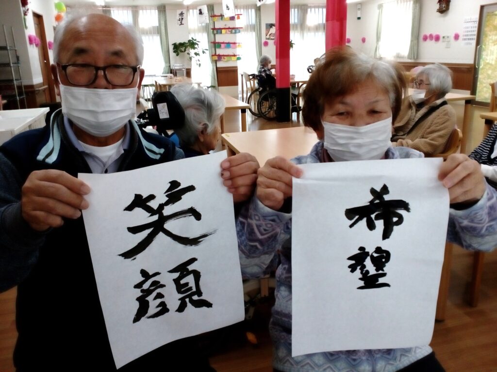 皆様の力作の書初めは食堂内に展示させていただきました😊 今年も楽しいレクレーションで楽しみましょうね👍