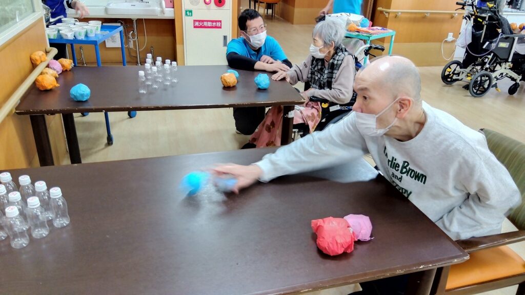 まず最初にボーリングのボールを新聞紙で作ります(ง •̀_•́)ง―○ニギニギ