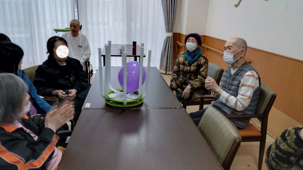 バレーだけでは足りず、バスケットのように椅子で作ったゴールにシューート(/・ω・)/🎈))
