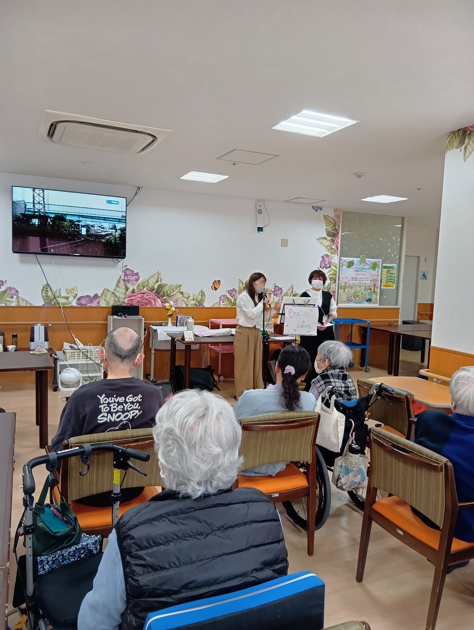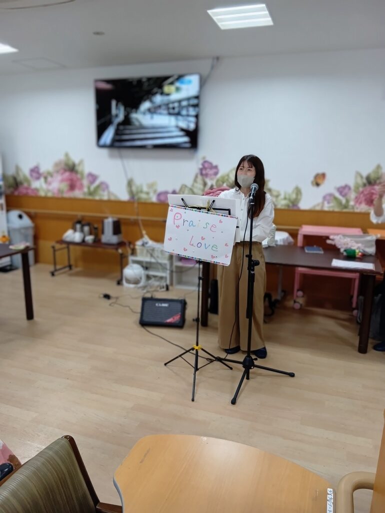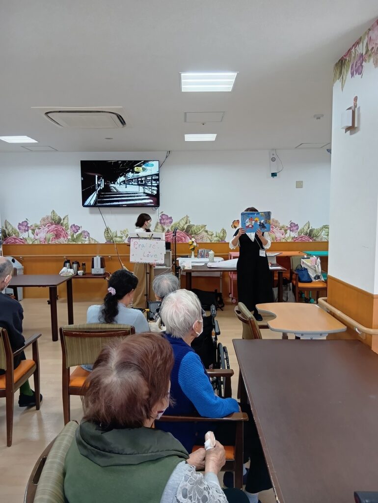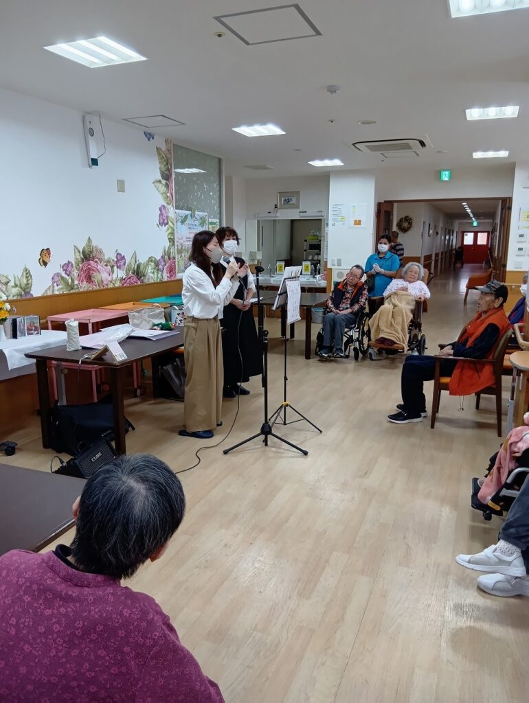 東住吉 ボランティアによる合唱♪ 2026.03.29 本日は、ボランティアの『プレイス・ラブ』の方々による、合唱や紙芝居などいろいろ盛りだくさんで楽しみました(/・ω・)/ お歌では讃美歌や赤いスイトピーなど最後には皆様でカラオケ🎤で合唱をし、とても盛り上がり楽しみました~♪(*^-^*)♪