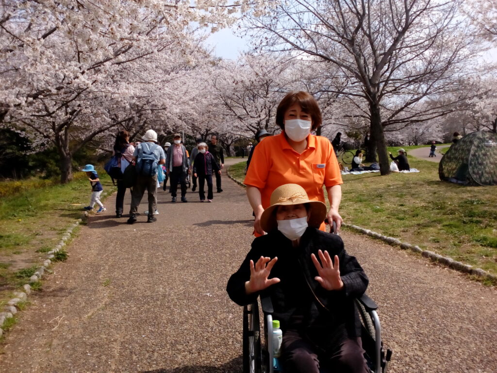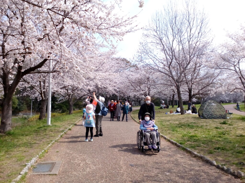 3月末 天候は晴れ 絶好のお花見日和です! 今年も「ライフリゾート枚方」では、山田池公園へお花見に行ってきました🚙